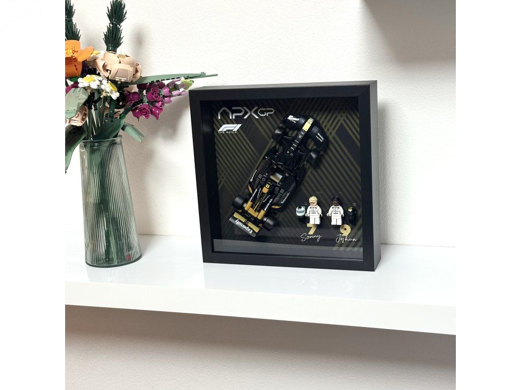 Tento prémiový rám je unikátním doplňkem pro váš model LEGO Speed Champions APXGP z filmu F1 - 77252. Design kombinuje černou a zlatou barvu, což dokonale ladí s barvami týmu. Zadní stěna nese logo týmu APXGP a filmu F1 (v hlavní roli Brad Pitt), včetně jmen jezdců Sonnyho Hayese (číslo 7) a Joshuy Pearce (číslo 9).