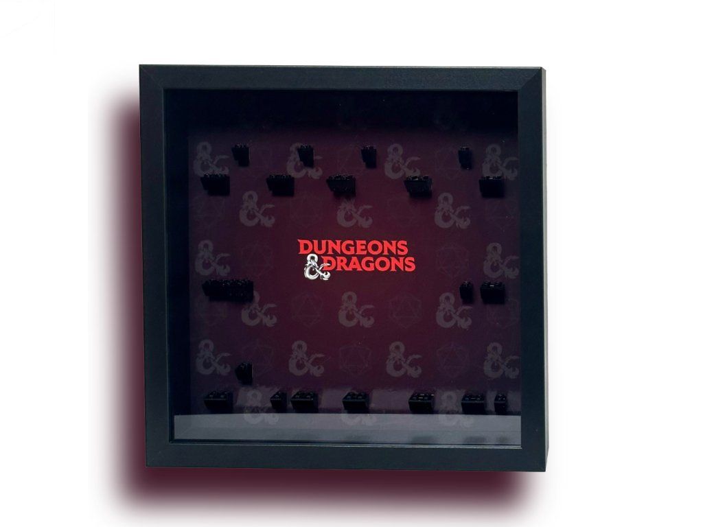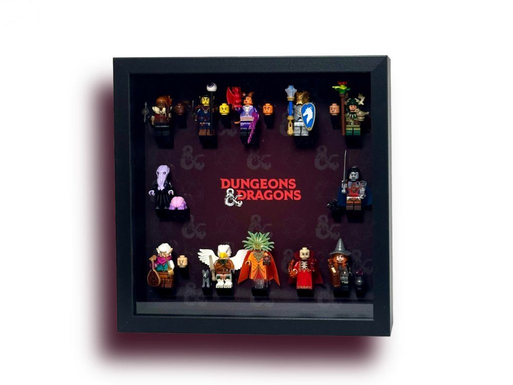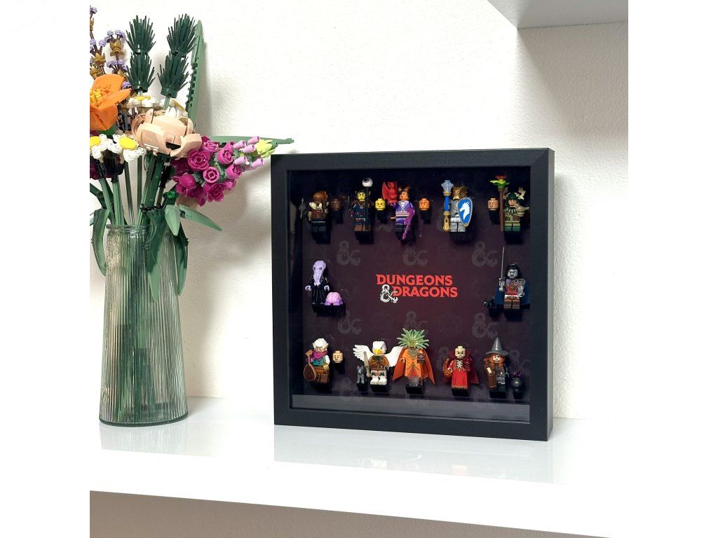 Tento prémiový rám je navržen na míru pro sérii LEGO® 71047 Dungeons & Dragons®, která obsahuje 12 ikonických postav – od trpasličího barbara, drakorozeného paladina a elfího barda až po Mind Flayera, Tashu the Witch Queen nebo Strahda von Zaroviche. Tmavé pozadí s logem Dungeons & Dragons a decentními symboly d20 nechává vyniknout barvy figurek a vytváří atmosféru epického dobrodružství.
