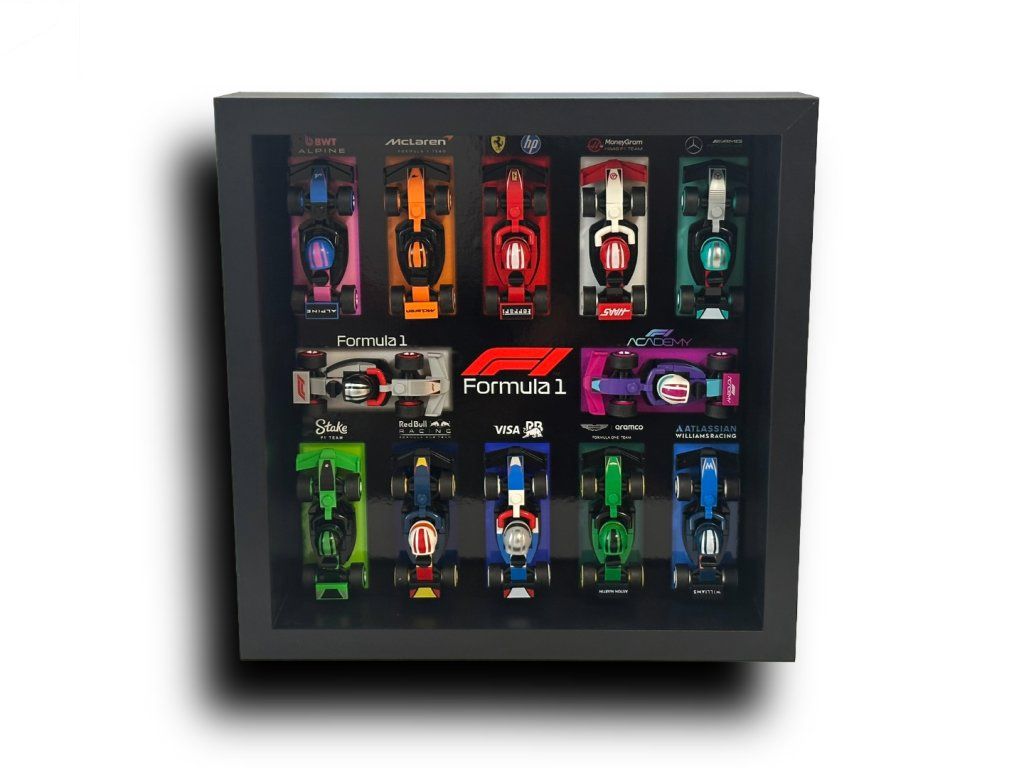 Modely se uchycují na originální LEGO kostky, díky čemuž pevně drží i při zavěšení na zeď, ale kdykoliv je můžete vyndat a znovu „odstartovat“ závod. Rám má průhledné krycí „sklo“, které chrání auta před prachem, a dostatečnou hloubku, aby vynikly tvary malých monopostů, takže dostanete sběratelský kousek, který se bude skvěle vyjímat v pracovně, herně i dětském pokoji.