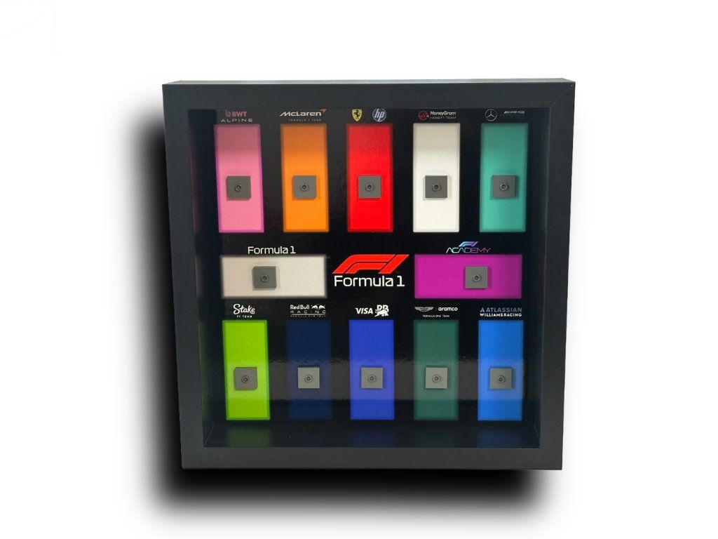Tento designový rám je navržen speciálně pro sběratelskou sérii 71049 F1 Collectible Race Cars, ve které najdete 12 mini monopostů: 10 týmů Formule 1 plus vůz F1 a F1 Academy. Každý z nich má své místo na pozadí s logem Formula 1 a zónami v týmových barvách, takže na první pohled poznáte celý startovní rošt.