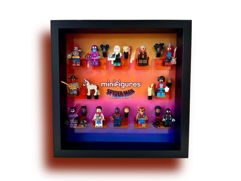 Prémiový rám pro kompletní sérii LEGO® Minifigures 71050 – Spider-Man: Napříč paralelními světy (Across the Spider‑Verse). Umožňuje vystavit všech 12 figurek včetně jejich originálních podstavců i veškerého příslušenství.