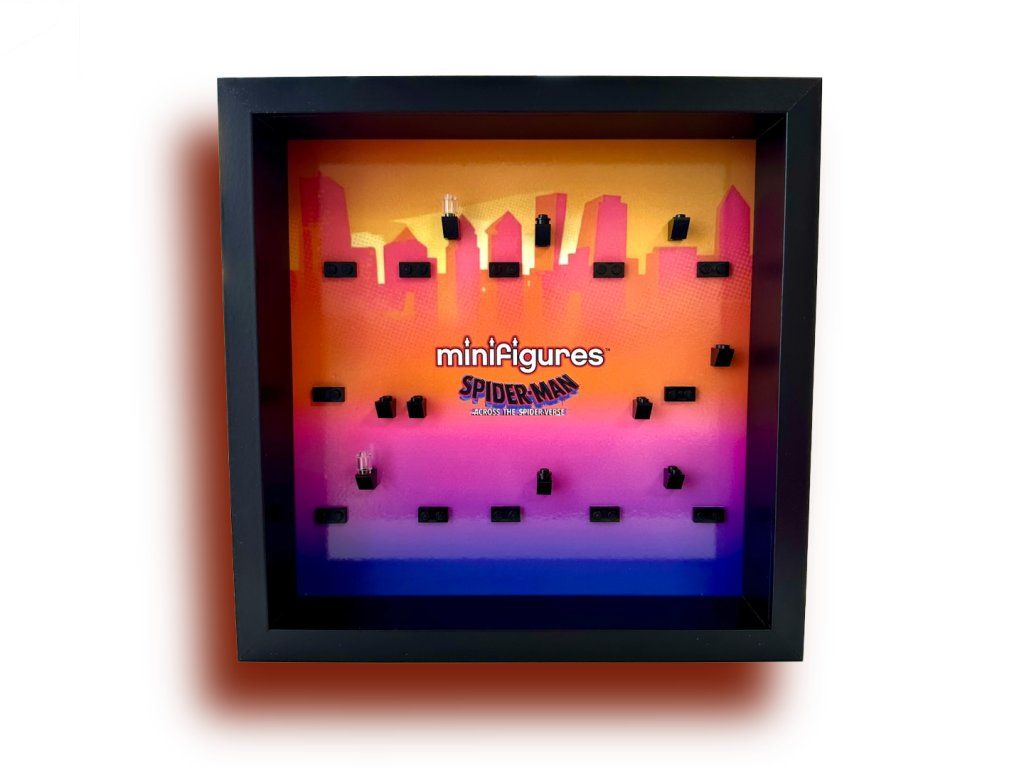 Tento rámeček je navržen na míru pro sběratelskou sérii 71050, takže má přesně 12 pozic pro všechny Spider-Many, spojence i padouchy z filmu Across the Spider‑Verse. Oproti běžným rámům je zde počítáno s tím, že každá figurka stojí na svém originálním podstavci – díky tomu lépe drží, vypadá sběratelsky „správně“ a snadno ji kdykoli vyndáš. Kromě toho je na pozadí připravené místo i pro všechny doplňky (zbraně, pavučiny, knihy, zvířata) a druhé typy hlaviček či masek, které tato série obsahuje.